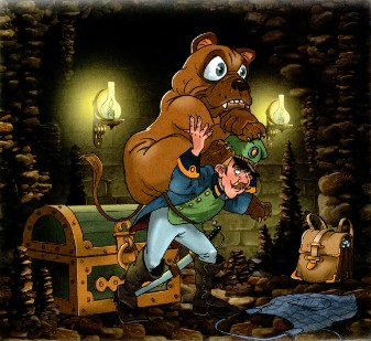 — Нечего тебе таращиться на меня, глаза заболят! — сказал солдат и посадил собаку на ведьмин передник. Увидев в сундуке огромную кучу серебра, он выбросил все медяки и набил оба кармана и ранец серебром. Затем солдат пошел в третью комнату. Фу ты пропасть! У этой собаки глаза были ни дать ни взять две круглые башни и вертелись, точно колеса.