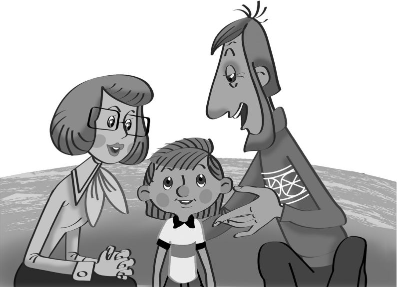 Он так обрадовался, что у него теперь фамилия есть, что даже заулыбался от радости. Он поглубже в сумку залез и стал свою фамилию примерять.