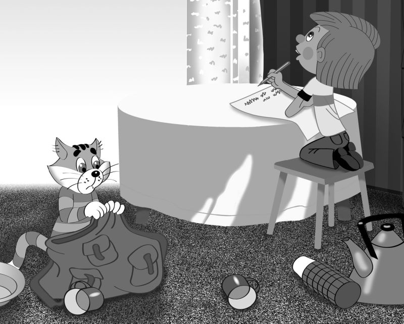 Утром папа с мамой на работу ушли. Дядя Фёдор проснулся, сварил себе каши, позавтракал с котом и стал письмо писать.