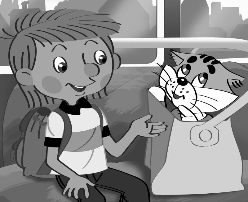 Дядя Фёдор сел в автобус и поехал. Ехать было хорошо. Автобусы в это время за город совсем пустые идут. И никто им не мешал разговаривать. Дядя Фёдор спрашивал, а кот из сумки отвечал.