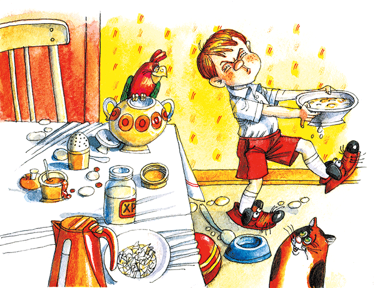 – Ну вот, съешь всю кашу, и пойдём. А я пока посуду вымою. Только помни – ты должен съесть всё до дна!