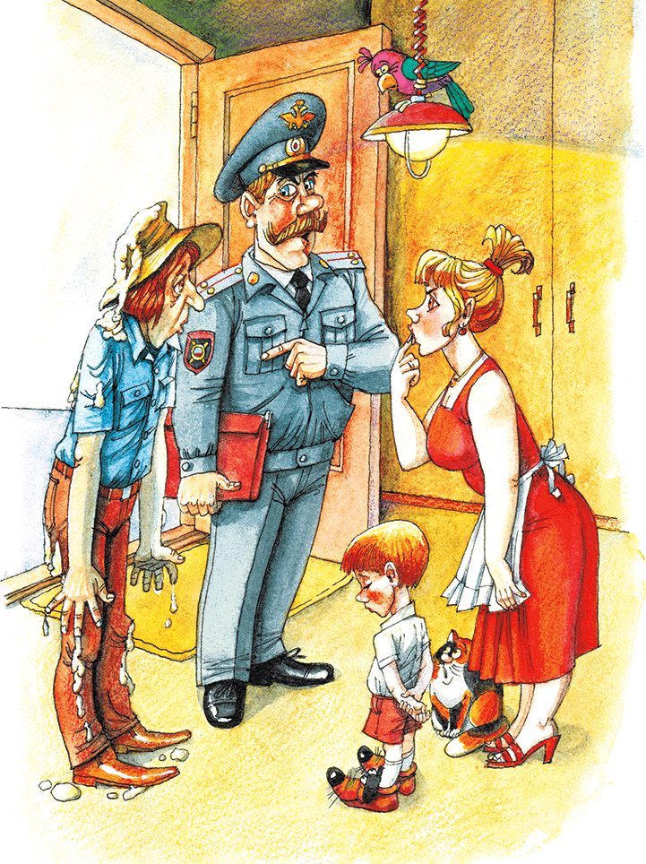 В эту минуту дверь открылась, и в комнату вошёл милиционер. Он сказал: