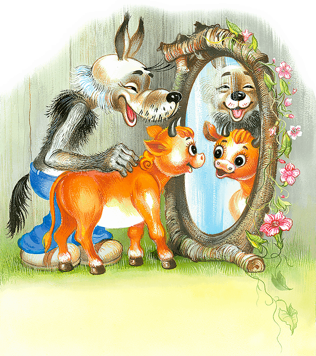 – Да ты что?! – задохнулся от возмущения Волк. Вынес во двор зеркало: – Во, смотри! Ну, вылитый я!