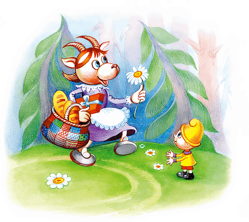 Расчувствовался Волк, низко Козе поклонился и преподнёс ей цветок. А потом осторожно понёс молоко домой.
