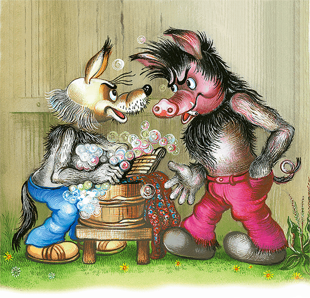 Побежал Телёнок на полянку, а Волк стирку затеял да сам с собой и разговаривает:
