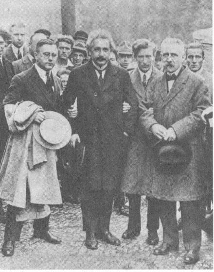 Поль Ланжевен (справа) и Альберт Эйнштейн (в центре) на мероприятии по укреплению мира, проведенном в Берлине в 1923 году.
