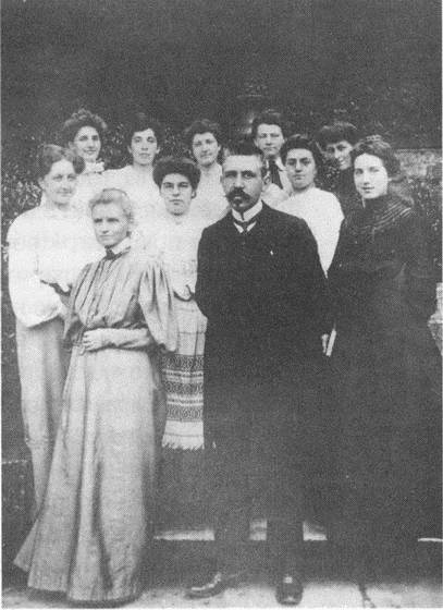 Поль Ланжевен и Мария вместе с группой учениц и коллег в 1910 году.