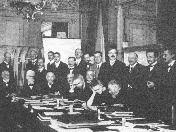 Мария и избранная группа ученых, которые присутствовали на Сольвеевском конгрессе в 1911 году (среди прочих и Эйнштейн — второй справа).