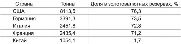 Впрочем, власти Китая также не особенно утруждают себя соблюдением конспирации, необходимой для того, чтобы снять сомнения экспертов. Китай почти не скрывает, что вся добыча золота в Китае поступает в государственные запасы. Напомним, что в последние годы объемы внутренней добычи в Китае равнялись (т): 2009 г. — 324; 2010 г. — 351; 2011 г. — 369; 2012 г. — 403. Получается, что после 2009 года, когда была зафиксирована величина официальных запасов золота 1054 т, в государственные запасы поступило еще 1447 т желтого металла. Следовательно, на начало 2013 года государственные запасы золота могли составлять: 1054 т + 1447 т = 2501 т. А это означает, что Китай находился не на пятом месте по этому показателю, как это следует из официальных данных, а на третьем — после США и Германии.
