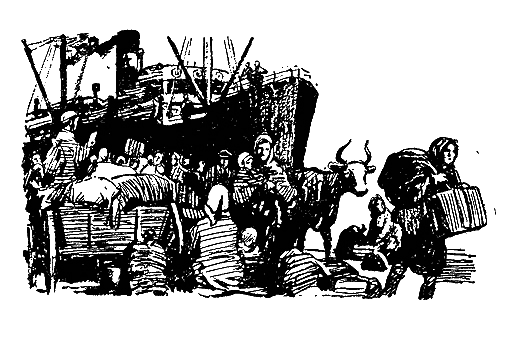 Человек полтораста пассажиров, переселенцев с Кубани, истошно крича и толкаясь, волновались у трапа.