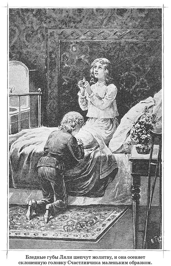 Мальчик повинуется. Белокурая головка склоняется к постели сестры. Льняные локоны рассыпаются по одеялу.