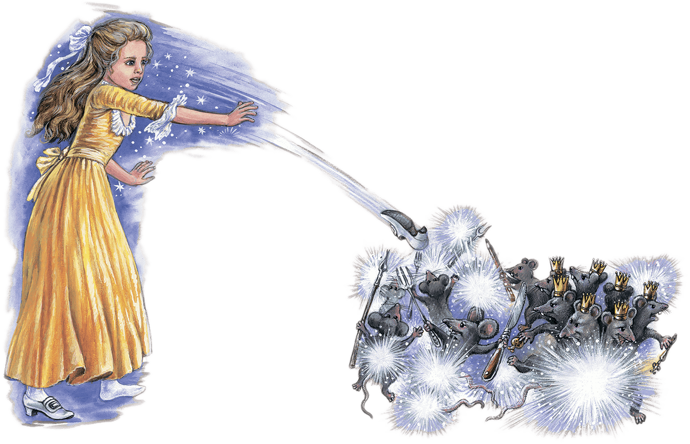 – О, мой бедный Щелкунчик! – вскричала Мари. Она стащила с левой ноги туфельку и с размаху швырнула её в самую гущу мышей, целясь в противного семиголового короля.
