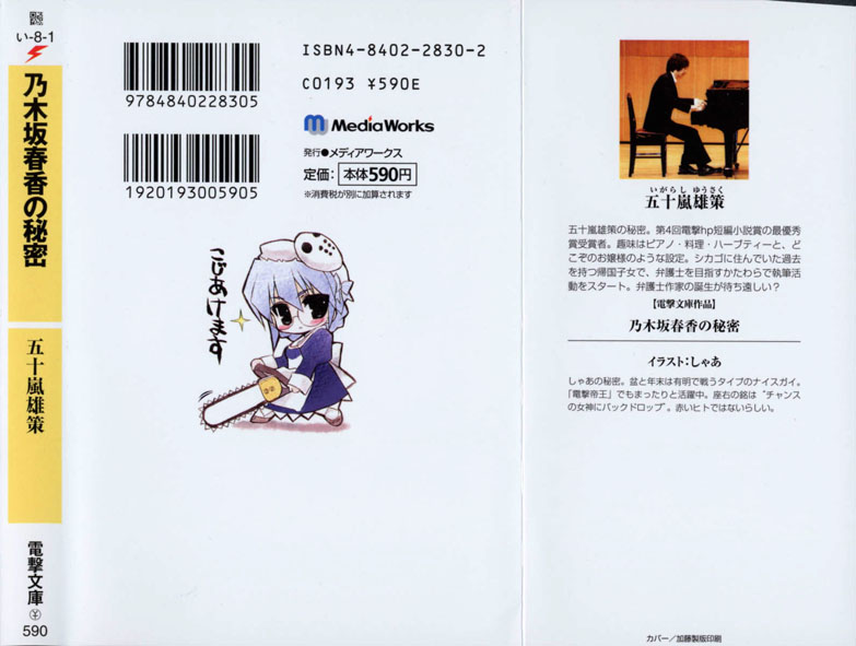 Секреты Икараши Юусаку. Обладатель главной премии четвертого конкурса журнала "電撃hp" для авторов ранобэ. Хобби: игра на пианино, приготовление пищи, травяные чаи — в некоторых отношениях, творчество, присущее девице из благородной семьи. Храня в сердце тот факт, что был рожден в Чикаго, я вернулся на родину, где, поставив своей целью выучиться на адвоката, одновременно начал заниматься писательской деятельность. Ну что, с нетерпением ожидаете рождения адвоката-писателя?