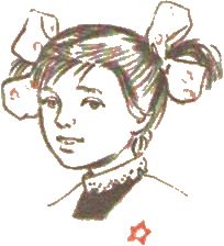 Но сначала я хочу познакомить тебя, читатель, с моей помощницей. Это октябрёнок Танечка, моя соседка по дому. На рисунке справа ты видишь портрет Танечки. Он будет совсем полным, если ты представишь у этой девочки голубые, весёлыми искорками глаза и рыжеватые, точно колоски спелой пшеницы, волосы. И ещё узнаешь, что Танечка бойкая, решительная и не боится сказать то, что думает, даже известному на всю школу драчуну Вовке Бузанову.