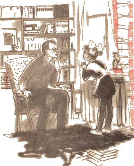 — Как бы не так! — фыркнула девочка в очках. — Вместо этого опять меня спрашивать стали: можно ли им на этого мальчика посмотреть? Да как он в школу ходит: ведь у вопросительного знака вместо ног точка. Вот какие ПРИСТАВУЧИЕ!