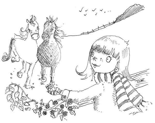 Она встала на нижнюю планку забора и, перегнувшись через верхнюю перекладину, позвала пони, которые уже поглядывали на неё с интересом. Как только она протянула руку с двумя кусочками сахара, к ней подошли сразу две маленькие лошадки. Молли уже приходила сюда кататься и часто бывала здесь с папой-ветеринаром, и она знала этих двух пони. Это были две девочки. Гнедую звали Белла, а чёрную – Помадка.