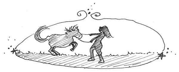 Пони заметил, что все отвлеклись, и не преминул этим воспользоваться. Он высоко запрокинул голову и вырвал повод из рук миссис Джеймс. Потом он попятился и, опустив голову, принялся скрести копытом по полу, словно готовясь прорваться к выходу и сбежать.