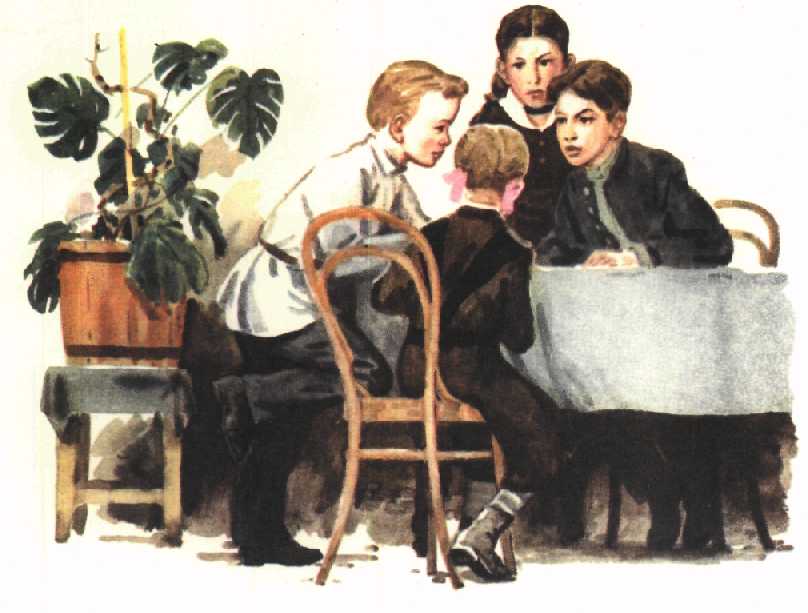 в этот день тянулись необыкновенно долго. Зато когда они закончились и Саша с Володей встретились у женской гимназии с сестрами, чтобы вместе идти домой, всем им показалось, что солнце светит совсем по-весеннему и улицы сверкают в праздничном инее, а Володя прислушался и нашёл, что галки сегодня поют, как скворцы.В доме чувствовался праздник.