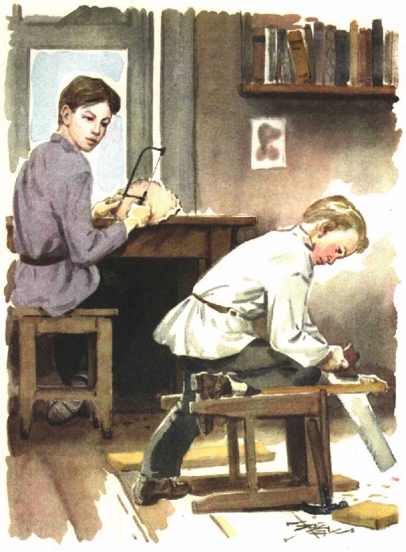 За ужином родители не замечали ни золотистых стружек, запутавшихся в кудрях Володи, ни прядей цветных ниток на шее у Оли, ни перемазанного красками лица Мити. И папе в эти вечера не хотелось сыграть с Сашей в шахматы…