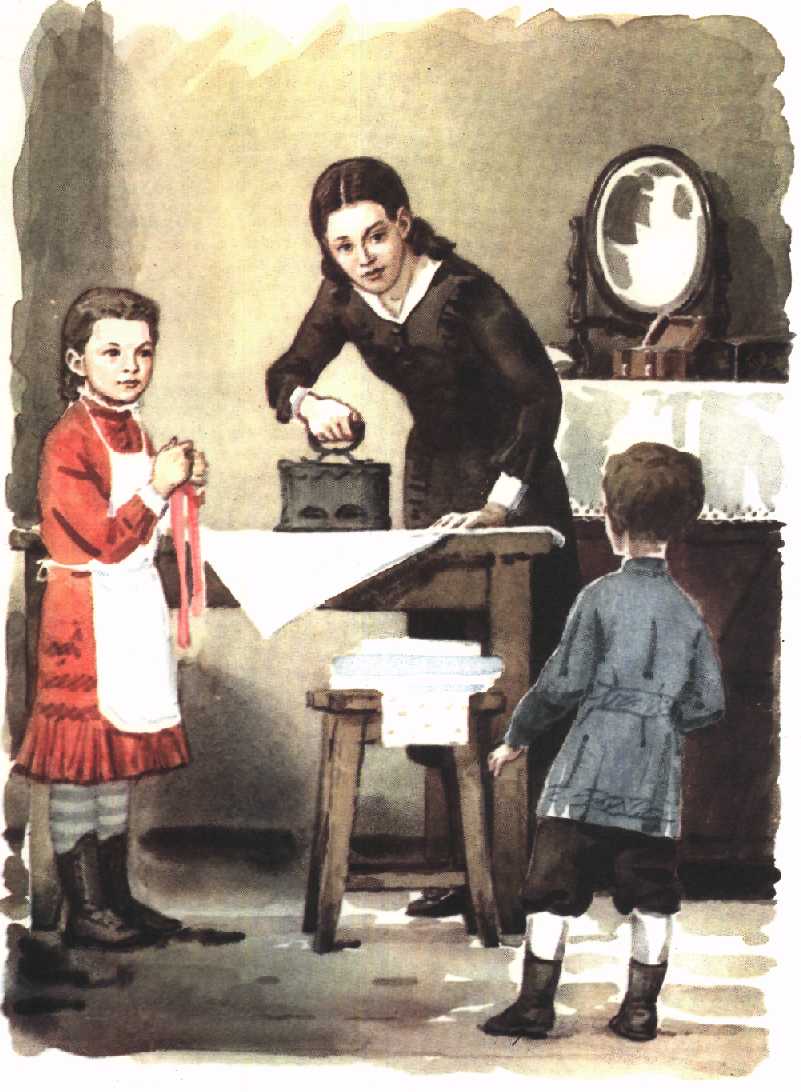 Аня и Оля крахмалили, наглаживали братьям рубашки и себе ленты. Митя наводил порядок в ящиках с игрушками.