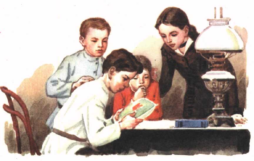 Саша с Володей принялись натирать воском крашеные полы и чистить себе и сестрам ботинки. И полы и ботинки засверкали как зеркальные.