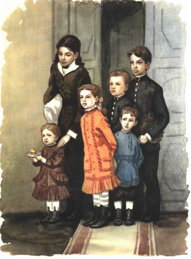 И вот они, шестеро детей, спускаются по лестнице и тремя парами входят в столовую. Впереди идут Маняша с Митей, за ними Оля с Володей и Аня с Сашей. У каждого за спиной свой Секрет, который они сейчас откроют маме.