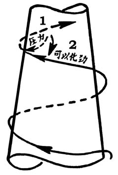 Поскольку в трактатах о гимнастиках особо подчеркивается, что на тренировках, как при широком раскрывании, так и при подбирании с плотным сжатием, ни в коем случае нельзя уходить от усилия-цзинь великого предела, при котором в любой момент «переворачивают и поворачивают центр ладони» и «крутят запястье, вертят руки», это напоминает вращательное движение Земли по дуге вокруг Солнца, когда Земля в то же время вращается вокруг себя. Так что усилие-цзинь в тайцзи – это не плоский круг, а объемная спираль, идущая вверх. 2. Роль спиралевидного движения усилия-цзинь типа наматывания шелковой нити