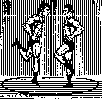 5. Встаньте в начерченный на земле круг диаметром 2—3 метра. Согните правую ногу, обхватите правой рукой ее голеностопный сустав, убрав другую руку за спину. Прыгая на одной ноге, попытайтесь вытолкнуть своего партнера из круга. Тот, кто окажется за пределами круга или встанет на обе ноги, считается побежденным.