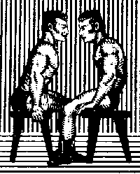 8. Сядьте на стулья друг против друга. Один должен поставить свои ноги между коленями партнера и, преодолевая его сопротивление, стараться развести колени на ширину плеч. Сдвигать с места ступни не разрешается. Затем поменяйтесь исходными положениями и повторите упражнение.