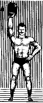 Знаменитый атлет И. В. Лебедев (дядя Ваня) выполнял это упражнение с двухпудовыми гирями несколько десятков раз.