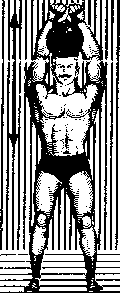 кто не менее года регулярно занимался упражнениями с отягощениями, в частности с гантелями, и довел их вес до 10—12 кг. Вначале упражнения нужно выполнять с гирями по 16 кг. Если этот вес окажется не под силу, то можно использовать пластмассовые пустотелые гири и, заполняя их песком, подобрать для себя оптимальный вес. Спешить с увеличением нагрузки не стоит. Она должна возрастать постепенно. По мере тренированности вес можно увеличивать, соблюдая следующее правило: если вы сможете выполнить то или иное упражнение без нарушения техники движений 15 раз, то вес можно увеличить настолько, чтобы вы смогли выполнить упражнение 5—6 раз. Заниматься рекомендуется три раза в неделю, в дневное время, за 1,5—2 часа до обеда, вечером — не позднее чем за 3 часа до сна.Выполняя упражнения, добивайтесь того, чтобы все движения были правильными и четкими. Перед занятиями с гирями проделайте хорошую разминку, в нее нужно включить упражнения на гибкость и растягивание. Заканчивайте разминку прыжками и бегом (3—5 минут) с переходом на ходьбу. После выполнения каждого упражнения с гирями нужно делать паузу в 2—3 минуты, во время которой походите, проделайте дыхательные упражнения и расслабьте те мышцы, на которые приходилась наибольшая нагрузка. Количество повторений каждого упражнения к концу года можно довести до 15—20, выполняя их в трех подходах. Периодический медицинский контроль в течение всего времени обязателен.