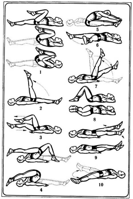 Согласитесь: каждое взятое отдельно упражнение, в общем-то, несложное. Да и повторений не слишком много. Максимум — 20. Но заметьте — упражнений было уже одиннадцать и во всех так или иначе в работу включались мышцы живота. Значит, этим мышцам мы задали серьезную нагрузку. Очень серьезную!