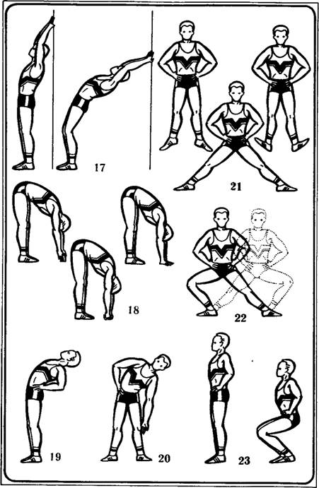 — Теперь наклоны назад, наклоны в стороны (рис. 19, 20)…