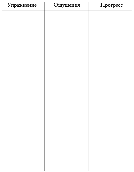 В этом дневнике вы можете записывать все ощущения, что появляются у вас во время и после выполнения упражнений, а также вы сможете отследить свой прогресс.