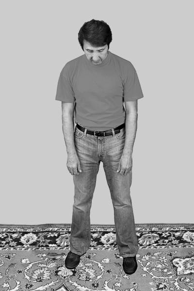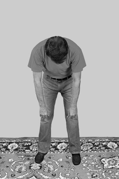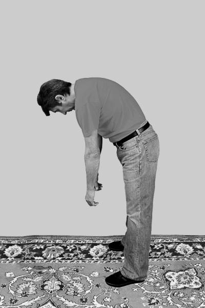 Исходное положение: встать прямо, руки опущены. Слегка наклонитесь вниз, к полу: спина круглая (а не прямая), голова опущена (смотрит вниз, в пол, шею не тянуть и не напрягать, руки опущены вниз). Сделайте короткий, шумный вдох в конечной точке поклона («понюхайте пол»).Слегка приподнимитесь, но не выпрямляйтесь полностью – в этот момент абсолютно пассивно уходит выдох через нос или через рот.