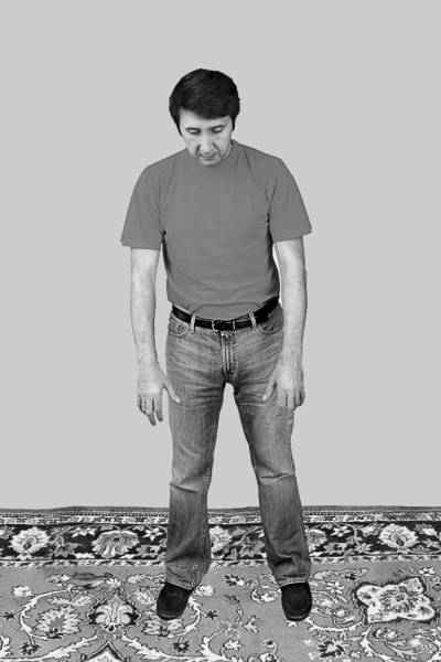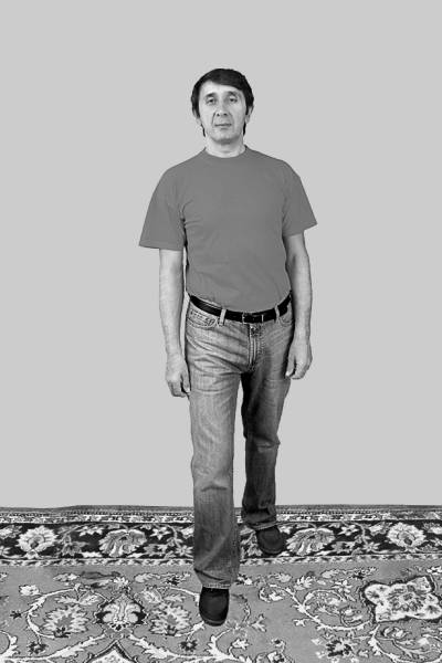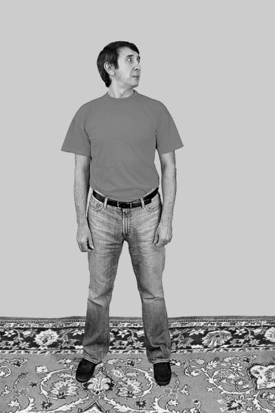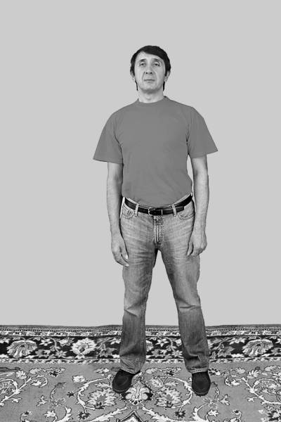 Шею ни в коем случае не напрягайте. Туловище неподвижно, плечи не поворачиваются вслед за головой. Руками можно держаться по бокам за брюки.
