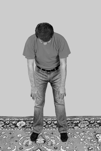 Это упражнение можно делать сидя. Если у вас травмирована спина или очень сильный остеохондроз пояснично-крестцового отдела позвоночника, не делайте прогиба назад в пояснице. Просто делайте встречные движения руками без откидывания головы назад и прогиба в пояснице.Низко кланяться в этом случае тоже нельзя ни в коем случае – кисти рук должны быть намного выше колен. Постепенно с каждой неделей тренировки амплитуда движений должна сама увеличиваться, и вы будете прогибаться в пояснице уже без каких-либо неприятных ощущений.