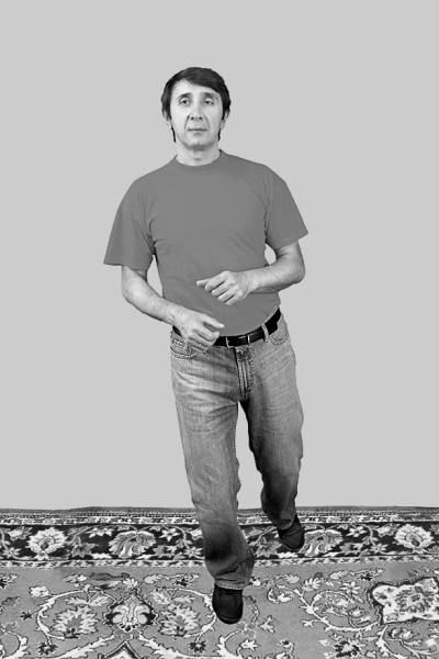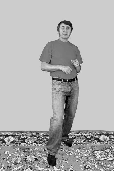 Слегка присели на правой ноге – вдох. Затем правое колено выпрямляем и только после этого переносим тяжесть тела на стоящую сзади левую ногу. Теперь она прямая, вся тяжесть тела на ней, а правая нога впереди на носочке для поддержания равновесия, согнута в колене. Присели на левой ноге и одновременно сделали короткий, шумный вдох носом (приседания легкие, пружинистые, низко ни в коем случае не приседайте).