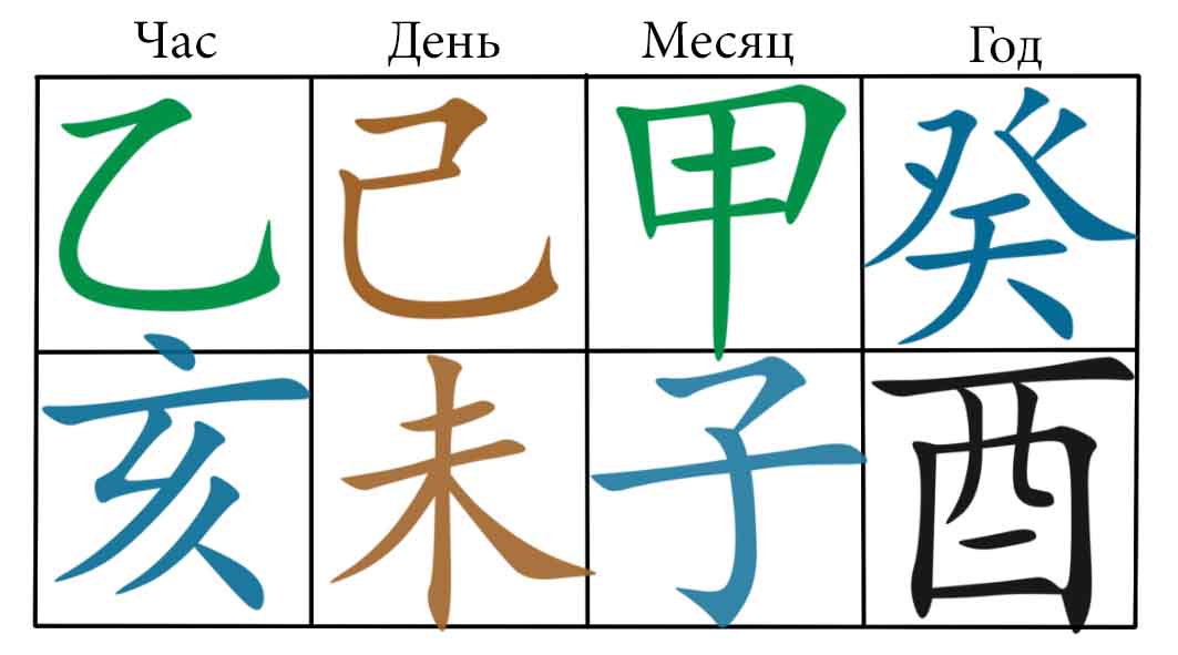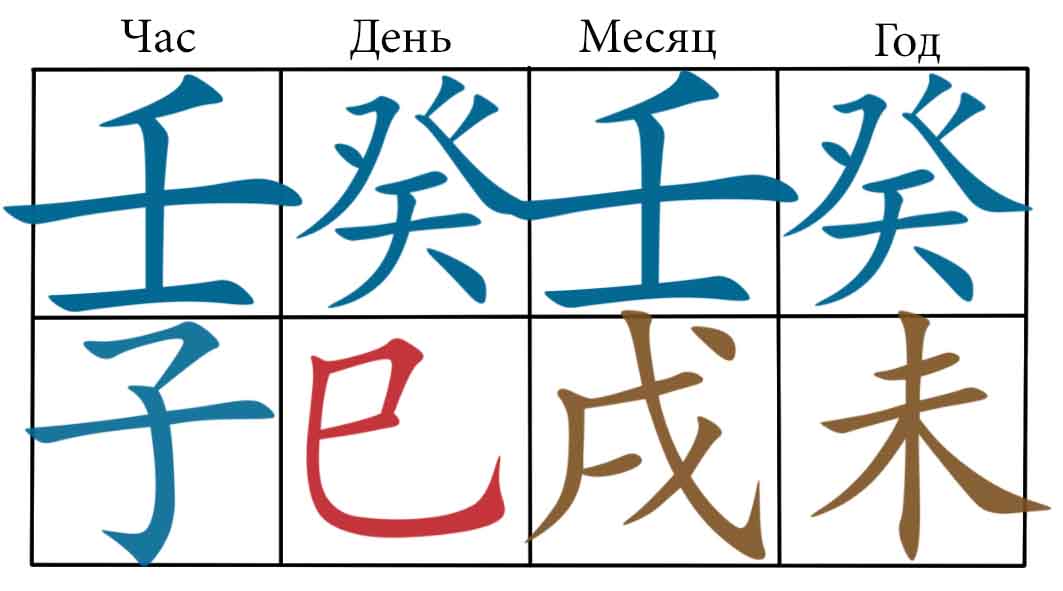 ДД иньской Земли использует янское Дерево как мужа, рождается в 11 месяце Крысы, теряет свое процветание и не процветает. В Часе карты встречается иероглиф свиньи (Хай) , который представляет для янского Дерева фазу Рождение, и муж получает процветание.