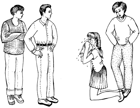 Встреча с хулиганами таит в себе много неприятных моментов. Реагируя на твое очарование, они могут начать с оскорблений, надеясь таким образом привлечь твое внимание. Они прекрасно отдают себе отчет, что такая воспитанная, красивая и умная девочка никогда и ни за какие коврижки не свяжется с ними, и поэтому поток ругательств и оскорблений, обрушивающийся на тебя, – это своего рода защитная реакция.