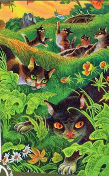 Эти коты не были воителями. Они жили небольшими стаями и не знали племен. Да и границ в ту пору тоже не было. Коты постоянно дрались - страх и голод заставляли их убивать друг друга. Коты опасались, что дичь исчезнет, а их охотничьи угодья захватит враг. Это было время беззакония, кровавой вражды и постоянных войн. Много котов погибло в то лихолетье.