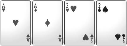 Это комбинация 2, А, X, X. Она содержит две пары и называется «две парные карты» (two card deuce).