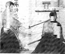 Большинству учеников айкидо будет в высшей степени полезно практиковать эту технику с мечом в ее старой форме. Когда ваш противник пытается нанести вам удар, сделайте скользящее движение влево и сбейте его меч вниз. Затем, когда он разворачивается в вашу сторону и поднимает меч, чтобы нанести еще один удар. Сделайте скользящее движение вправо и нанесите рубящий удар по его запястью. Эта техника основана на старой технике итто-рю мё-кэн, „волшебный меч“, и дзэцумё-кэн, „удивительный меч“. Как и в большинстве техник этого рю, действие здесь хоть и простое, но имеет глубокую теорию.
