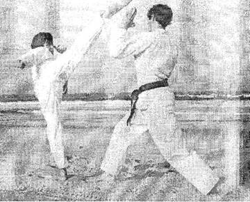 В бою существует два основных метода объединения различных техник в одну комбинацию: одна техника может перетекать в другую, или вы можете отскакивать от одной техники к другой. Комбинации из искусства каратэ прекрасно иллюстрируют эту идею. Если вы выполняете мавасигэри, горизонтальный, круговой удар ногой, и он Проходит мимо цели, ваше кимэ остановит ногу. (После завершения любой техники вы на долю секунды напрягаете все свои мышцы, чтобы обеспечить максимальную передачу силы.) Секрет рютё заключается в силе кимэ.