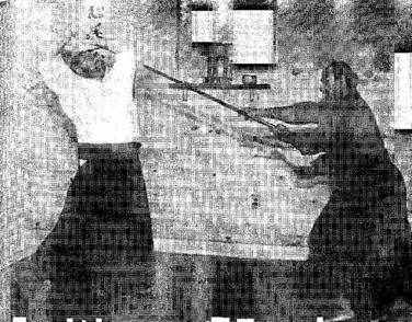Утидати (в белой куртке) поднимает свой меч для атаки, но отклоняется назад, когда ситати взрывается техникой мэндзуки, секунды позже за ним следует правый. Поскольку две различные техники рук объединены вращением вашего тела и выполняются на одном дыхании, то они превратятся в одно движение — ваш правый кулак устремится вперед до того, как левый начнет двигаться назад.