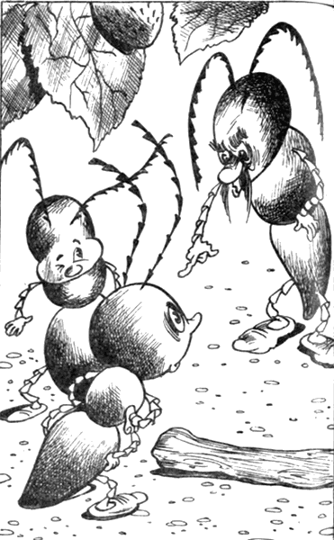 Не знаю, чем бы закончилось все это (я даже боюсь догадываться, чем бы это все могло кончиться!), если бы сидевший на высоком цветке муравей не закричал: