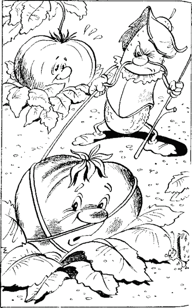 И долго еще продолжались торжества по случаю провозглашения нового государства на огородной грядке. Не будем их описывать. Поглядим, что делается в стране Помидории.