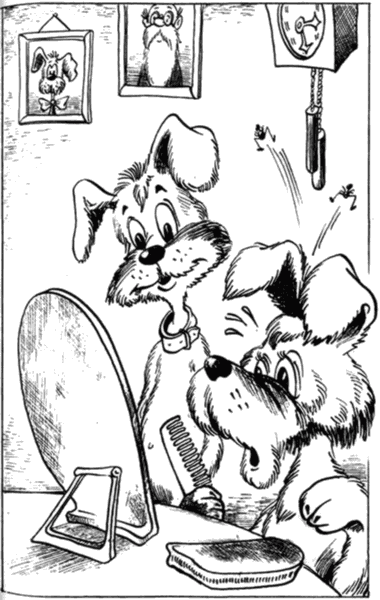 взял гребешок, подошёл к зеркалу и увидел в нём своё отражение.— Послушай, — закричал он, показывая на зеркало, — там собака какая-то!