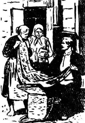 Весело оповещая о своем приходе, на улице села появляется коробейник. Потряхивая каштановой шевелюрой, улыбаясь во весь большой рот, он раскладывает на чьем- нибудь крыльце свое богатство. Из короба, как фокусник из чудесной шкатулки, он вынимает то сверкающий красками платок, то узорчатый ситец на платье, то маленький ящик из морских ракушек, то нитки для вышивания, то иголки, то кольцо с огромным, переливающимся на солнце камнем. Коробейник задорно расхваливает свой товар. Обступившие женщины зачарованно смотрят ему в руки, ловко выхватывающие из короба то одно, то другое. Кто-то уже примеривает платок, бежит в избу за деньгами. Сзади, посмеиваясь, переминаются мужики, подошедшие на зазывной голос коробейника.