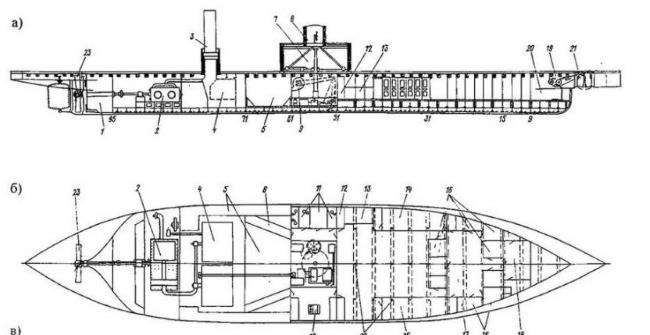 Конструкция броненосной башенной лодки в большой степени повторила американский тип. В 1869 г. броненосные башенные лодки перевели в класс мониторов. Тихоходность была самым большим недостатком всей серии этих мониторов. (Шалковский А.Г., Каторин Ю.Ф. Становление броненосного кораблестроения в Российской Империи. СПб, 2019. – С.32).